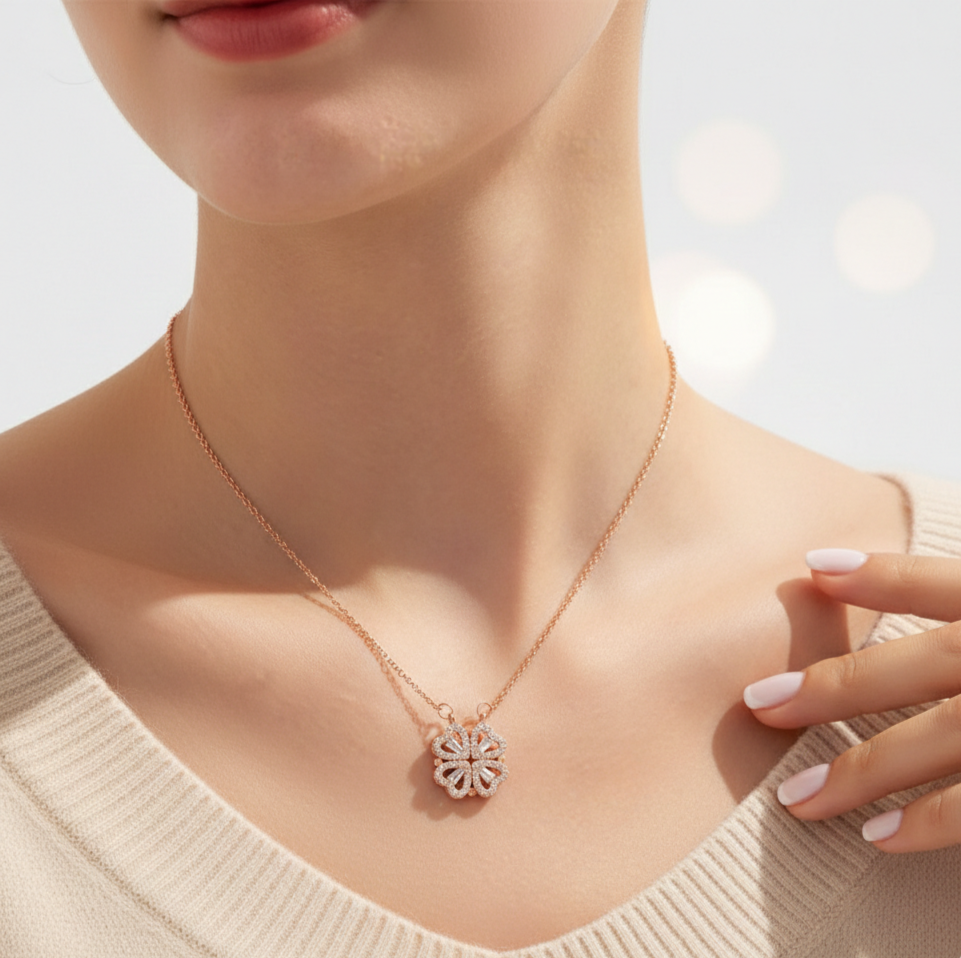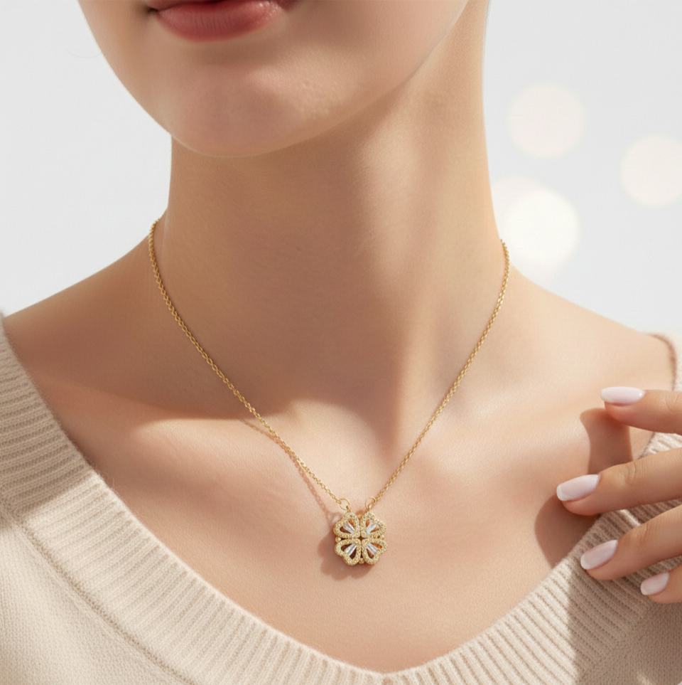 This clever magnetic design allows you to wear it as a lucky four-leaf clover or a string of four delicate hearts. 🍀💞 It’s the perfect way to match your jewelry to your mood and keep love close to your soul.